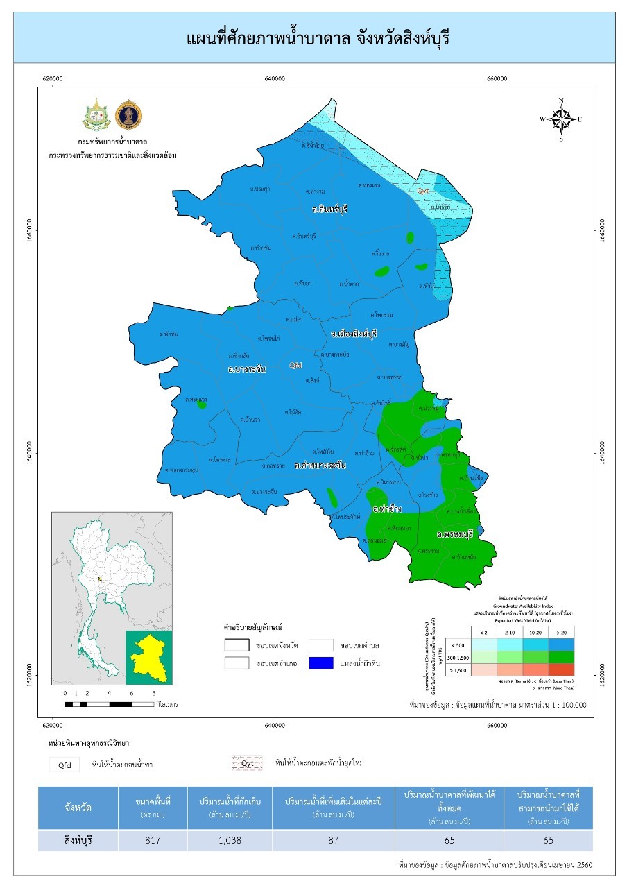แผนที่น้ำบาดาลจังหวัดสิงห์บุรี